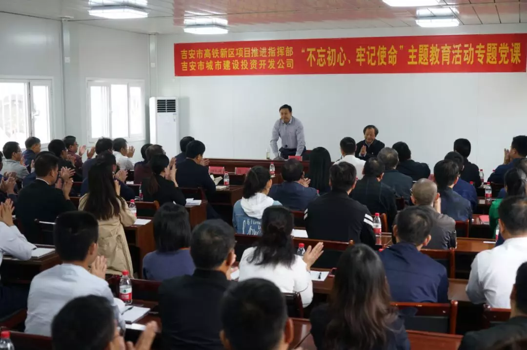 1023日上午,市委常委、常務(wù)副市長毛順茂來到高鐵新區(qū)五指峰項目建設(shè)指揮部,在項目一線作了一堂生動的主題教育專題黨課報告。市城投公司全體黨員干部、高鐵黨建聯(lián)合體成員單位黨員100余人參加。