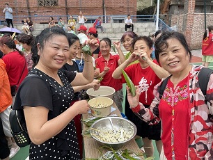 文藝表演結(jié)束后,江西省吉安市建筑安裝工程總公司青年志愿者與社區(qū)志愿者們?cè)O(shè)置了創(chuàng)文明城市宣傳區(qū),向居民發(fā)放法律、環(huán)保、文明、防詐騙等宣傳手冊(cè),解答部分群眾咨詢。另一邊,志愿者們與群眾一起包粽子等活動(dòng),其樂(lè)融融。